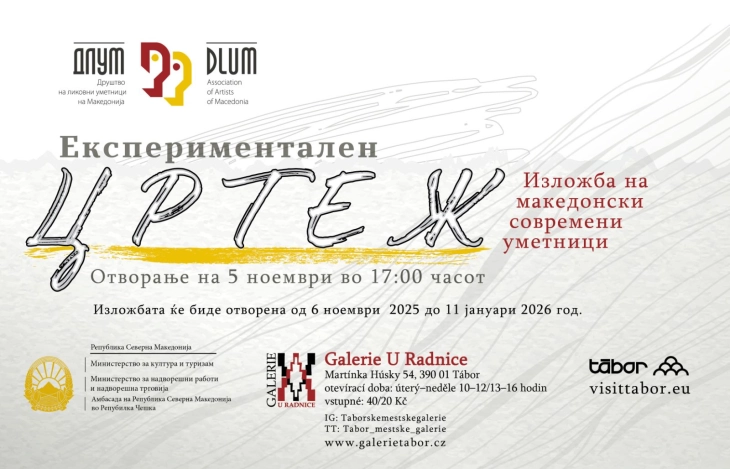 Во организација на Друштвото на ликовни уметници на Македонија (ДЛУМ) денеска во градот Табор, Република Чешка, ќе биде отворена изложбата „Експериментален цртеж“ каде ќе бидат претставени дела од македонски современи ликовни уметници кои учествуваа на истоимената изложба во 2023 и 2025 година.