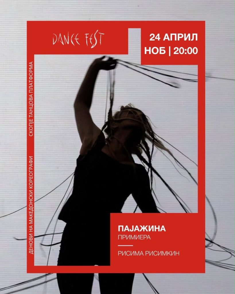 Следува премиерата на „Пајажина“ во кореографија на Рисима Рисимкин, музика на Тони Китановски, сценографија и дизајн на светло на Матеа Мијановиќ, во изведба на првенката на Скопје танцовиот театар Адријана Данчевска. „Пајажина (во полињата на неизвесноста)“ е интимна и длабоко рефлексивна танцова претстава која ја истражува сложеноста на животот и патеките по кои се движиме. Во центарот на делото е прашањето: колку една одлука може да ја промени нашата насока, и дали воопшто постои јасна линија помеѓу изборот и судбината. Претставата го третира животот како мрежа од поврзани моменти, одлуки и влијанија — пајажина во која секој чекор нè води кон нова неизвесност. Оваа пајажина не е само метафора за заплетканоста на животот, туку и за невидливите сили што ги обликуваат нашите избори: општествени структури, лични стравови, желби и интуиции. Преку минималистички, но силно набиен сценски израз, телото станува главен носител на наративот. Движењето е истовремено кревко и напнато, балансирајќи помеѓу контрола и препуштање, како одраз на човековата состојба во постојано менлив свет. „Пајажина“ отвора простор за размислување за слободата на избор, одговорноста и неизвесноста како суштински дел од човечкото искуство — состојба во која секое излегување од познатото води кон нови, непредвидливи полиња.