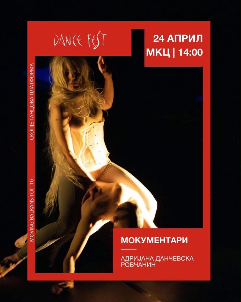 Денес во 14ч во Младинскиот културен центар, пред професионалната публика, ќе биде изведена претставата „Мокументари“ на Адријана Данчевска, во изведба на Нина Петрушевска и Лука Ѓоргиевски. Оваа претстава е дел од ТОП 10 претстави на платформата „Мувинг Балканс“ и ќе биде изведена во мај во Нови Сад. Музиката е на Александар Гроздановски, а сценографијата на Ивана Мојсовска. „Мокументари“ започнува како остра рефлексија на македонското општество, откривајќи ги не само видливите притисоци што го обликуваат јавниот живот, туку и потивките, попродорни сили на страв, вкочанетост и соучесништво. Делото свесно одбива удобност или разрешување, не нуди емоционално олеснување — туку само немир од препознавањето. Преку фрагментирана и нелинеарна нарација, тоа ги разложува конвенционалните приказни и открива како репресијата функционира низ секојдневни гестови и молчења. Наместо да претстави јасни херои или негативци, делото ги разоткрива системите што нѐ учат да прифаќаме и да се приспособуваме — каде помирувањето станува начин на преживување. Како што се развива делото, овие политички реалности се раствораат во спекулативен простор каде моќта повеќе не е линеарна, а родот излегува од фиксните хиерархии. Идентитетот станува флуиден, а авторитетот се преобразува во нестабилни, поетски форми — отворајќи нов пејзаж надвор од познатите структури.