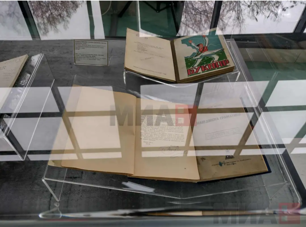 Присутните можеа да ги видат оригиналните примероци од „Речник од три јазика“ од Ѓорѓија Пулевски од 1875 година, „За македонкцките работи“ од Крсте Петков Мисирков од 1903 година, примерокот од „Abecedar“ испратен за одобрување во Друштвото на народите во 1925 година, првиот „Буквар со читанка“ на кодифициран и стандардизиран македонски јазик издаден во 1945 година и првата „Македонска граматика“ од Круме Кепески од 1946 година, како и фототипните изданија со предговори од д-р Весна Мојсова-Чепишевска, д-р Симона Груевска-Маџоска, д-р Елка Јачева-Улчар, д-р Станислава Тофоска и д-р Јованка Кепеска.