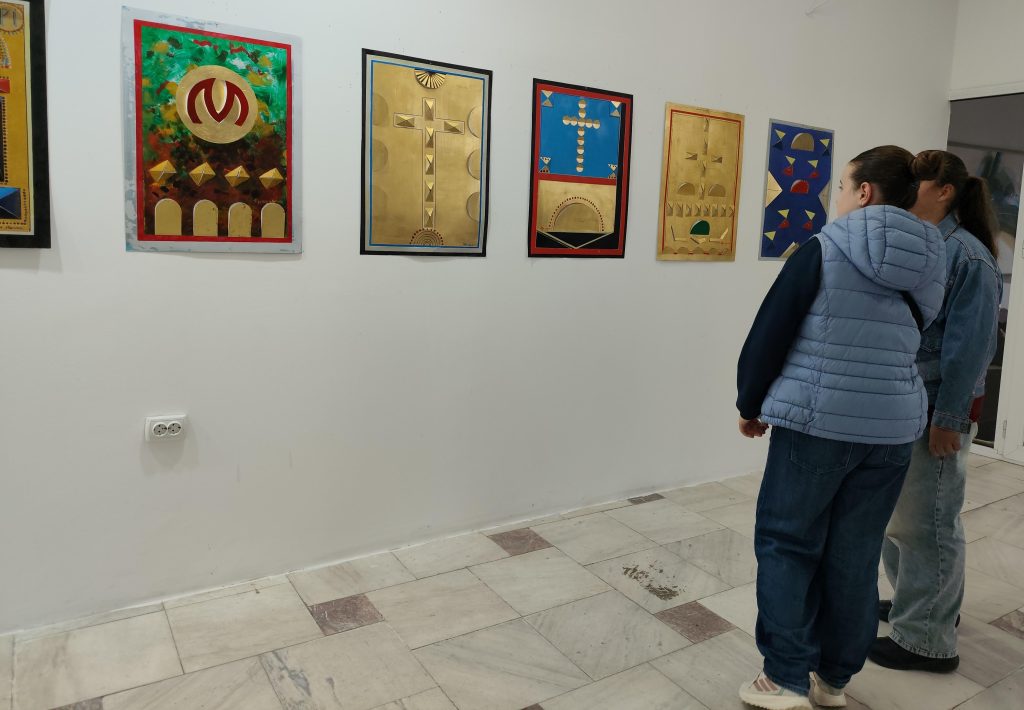 Отворајќи ја изложбата м-р Каролина Мицевска, посочи дека на делата се насликани многу геометриски форми и симболи во боја, со најразлични мотиви-крстови, пејзажи, кочанско поле….