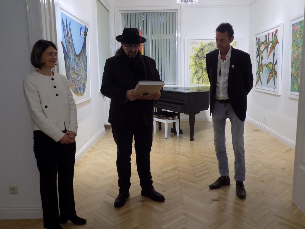 Вечерва, не славиме само со зборови, туку со слики кои зборуваат на јазикот на душата. Слики кои не се само дела, туку врати кон универзуми што се отвораат пред нас“, беше истакнато при отворањето на изложбата.