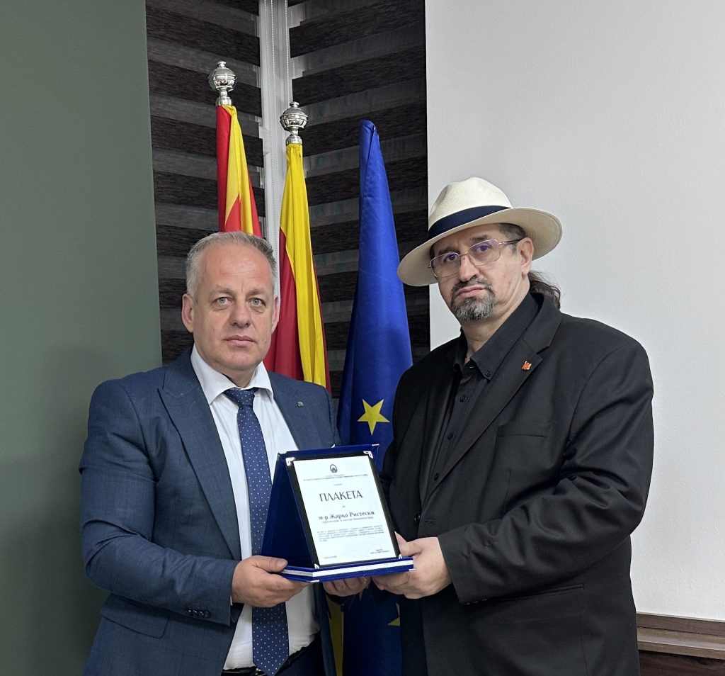 Во рамки на средбата, директорот на Македонскиот културно-информативен центар во Софија, проф. д-р Зоран Пејковски, воедно и дипломатски советник, му врачи на градоначалникот Ристески Плакета за особен придонес и поддршка во развојот и промоцијата на македонската култура во странство. Ова признание има особена симболика, бидејќи претставува потврда за континуираната посветеност на градоначалникот во поддршката на културните иницијативи и неговата активна улога во градењето мостови на соработка меѓу институциите.
