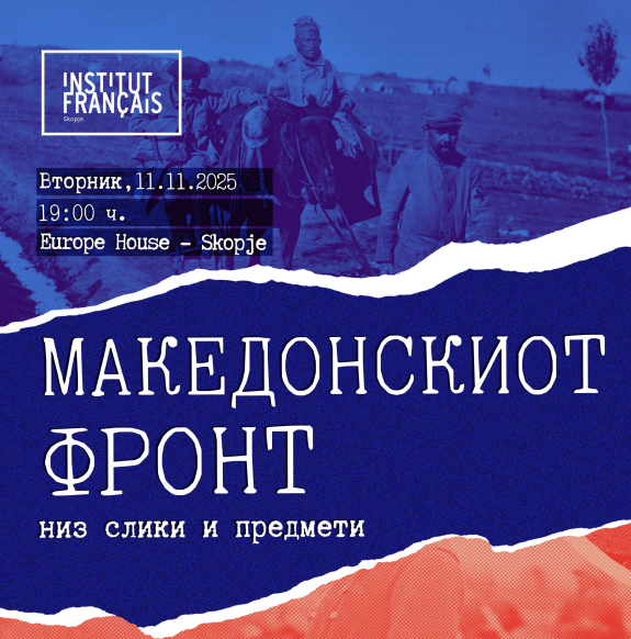 Францускиот институт во Скопје организира предавање и изложба „ Македонскиот фронт низ слики и предмети “, кое ќе се одржи во вторник, 11 ноември 2025 година, од 19:00 часот, во Europe House, Скопје.