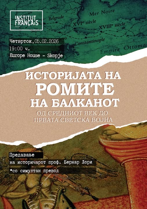Францускиот институт во Скопје има чест да ве покани на предавање посветено на историјата на Ромите на Балканот, од нивното доаѓање во Средниот век до Првата светска војна.
