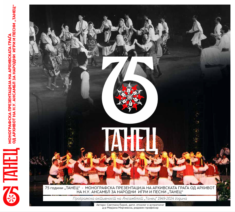 Националната установа Ансамбл за народни игри и песни „Танец“ организира промоција на својата јубилејна монографија: „75 години Танец“-Монографска презентација на архивската граѓа од архивот на Н.У Ансамбл за народни игри и песни „Танец“