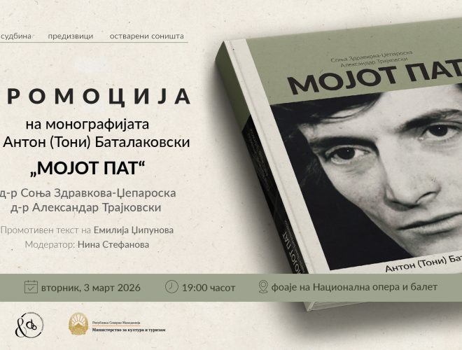 На 3 март 2026 година (вторник), со почеток во 19:00 часот, во фоајето на Националната опера и балет ќе се одржи промоција на монографијата „Мојот пат“, посветена на животот и професионалниот опус на Антон (Тони) Баталаковски – еден од позначајните личности во историјата на македонскиот балет. Автори на монографијата се др. Соња Здравкова-Џепароска и др. Александар Трајковски.