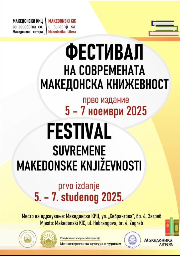 Првото издание на Фестивалот на современата македонска книжевност ќе се одржи од 5-7 ноември во Македонкиот КИЦ во Загреб.