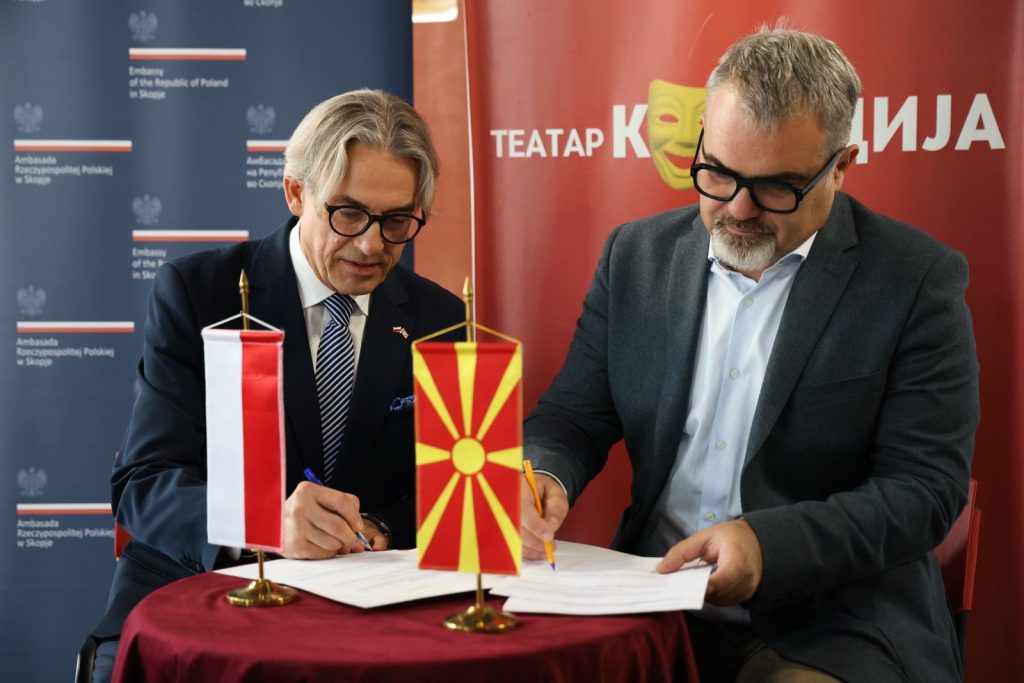 Документ за завршениот проект со поддршка од Полска потпишаа полскиот амбасадор Мариуш Бримора и директорот на Театар Комедија, Дарко Спасов.