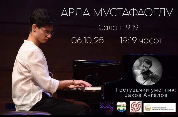 Во Салон 19,19 во Културно-информативниот центар-Скопје вечер солистички концерт ќе има пијанистот Арда Мустафоглу.