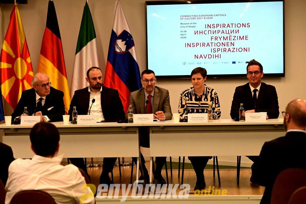 Претставници на локалните власти од Кемниц (Германија), Горица (Италија) и Нова Горица (Словенија) денеска престојуваат во Скопје, каде што заедно со Град Скопје реализираат низа активности посветени на размена на искуства поврзани со титулата европска престолнина на културата, која Скопје ќе ја носи во 2028 година. Официјалното обраќање се одржа во „Јуроп хаус“, каде говореа заменик-шефот на ЕУ Делегацијата Бен Нупнау, градоначалникот на Скопје, Орце Ѓорѓиевски, градоначалниците на Нова Горица и Горица – Само Турел и Родолфо Зиберна, како и претставничката од Кемниц, европската престолнина на културата, Џозефин Хаге.