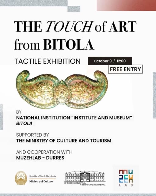 Со тактилната изложба „Допирот на уметностa од Битола“, НУ Завод и музеј – Битола денеска (9 октомври) гостува во „Музехлаб“ во Драч, Албанија.