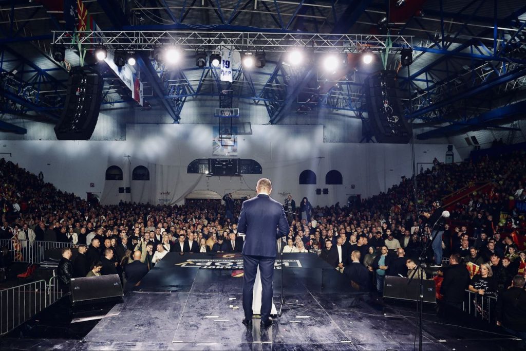 -Испишуваме заедно нова историја на оваа генерација решена да победи. И кога велиме „вистинскиот избор“, не велиме лозинка — туку вистината на секој граѓанин што не се предаде. На секој човек што работи, создава, помага и верува дека оваа земја може и мора подобро. Од Охрид до Штип и Делчево, од Битола до Скопје, се слуша истиот глас — гласот на народот што сака ред, сигурност и иднина. Сака правда. Сака чесност. Гласот на луѓето што не чекаат некој да им ја донесе среќата, туку сами ја создаваат. И токму затоа, вечерва, од овде— праќам порака што никој повеќе нема да може да ја замолчи: дека оваа земја избира сигурен пат, избира работа, избира стабилност, избира — надеж.