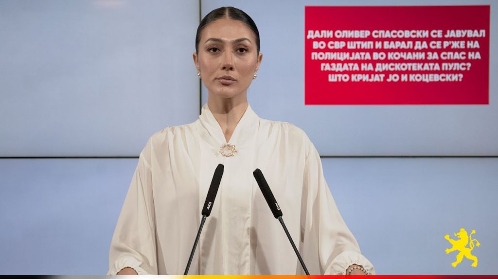 Според информациите кои излегоа во јавноста, обелоденети од медиумите доаѓаме до фрапантни сознанија и вмешаност на врвот на власта на СДС во случајот со нелегалното работење на дискотеката Пулс. Имено медиумите објавија телефонска конверзација помеѓу синот на газдата на Пулс – Михаил и извесна Бојана. Од конверзацијата се влече логичниот заклучок дека власта на СДС вешто го штитела газдата на Пулс, а во тоа биле вмешани и министри. Имено според објавеното во медиумите, на 17 февруари 2022 година, синот на газдата Дејан Јованов – Деко, Михаил, се јавува до извесна Бојана и ја известува дека Оливер Спасовски ( министер за внатрешни работи) се јавувал во СВР Штип, за да ургира за дискотеката. И тоа со зборовите – „Оливер Спасовски се е јавувал у Штип у полицијата за нас“. По што Бојана го прашува Михаил зошто се јавувал Оливер Спасовски, дали за да ја намалат казната и за каква казна станува збор? По што Михаил ѝ кажува дека добил информација за казна која требало да им биде наплатена од УЈП, во висина од 40.000 евра ѝ дека ургенцијата била со цел да не им досадува полицијата. „И он кажал тој началникот од Кочани утре одма на информативен разговор да дојде … кај началникот за Источна Македонија… ќе им с’ржат малку… да се посерат“ завршува Михаил. ЈО и Љупчо Коцевски треба да кажат дали истражиле и дали го повикале Оливер Спасовски на информативен разговор, дали е извршена проверка во полицијата во Штип и Кочани и дали постоела негова ургенција? Дали ЈО и Љупчо Коцевски постапиле според закон, или го кријат и штитат Оливер Спасовски? ЈО и Љупчо Коцевски да не молчат, истакна Андоновска.