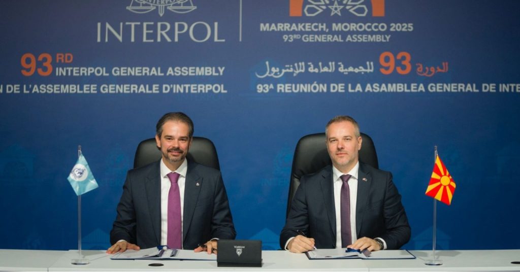 На маргините на Генералното Собрание на ИНТЕРПОЛ, вчера во Маракеш, Генералниот секретар Валдеси Уркиза и директорот на Бирото за јавна безбедност при МВР, Александар Јанев го потпишаа Писмото за пристапување, со што се отвораат нови можности за унапредување на нашите професионални и институционални капацитети.