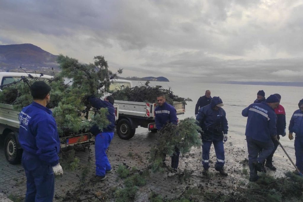 Покрај справувањето со поплавените површини, екипите на јавните претпријатија интервенираа и на неколку локации каде што силниот дожд и ветерот предизвикаа пад на дрвја, со што беа блокирани делови од јавните површини.
