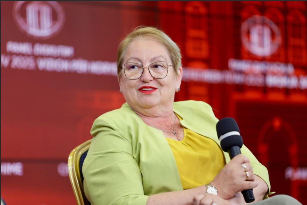 Јаневска: Оваа Влада сериозно пристапи кон образованието како стратешки сектор. Во изминатите 15 месеци, направивме конкретни и мерливи чекори за подобрување на статусот на наставниците. Платите на наставниците во основното и средното образование пораснаа за 12%, а кај универзитетските професори зголемувањето беше 14%. Ова е показател на нашата заложба, не само со зборови, туку и со дела. Истовремено, воспоставивме систем за кариерен напредок, со можност наставниците и стручните соработници да се стекнат со звања како советник и ментор, што не само што носи професионално признание, туку и финансиски стимул.