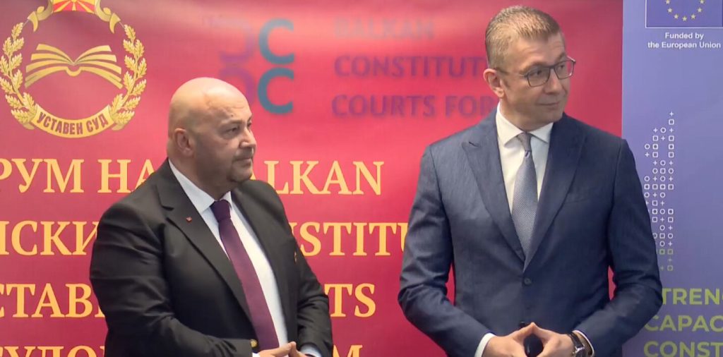 Претпоставувам дека самиот Уставен суд веќе размислува како отприлика би изгледала архитектурата на тој специјален закон, којшто ќе ги опфати и овие институти како што е Уставната тужба и така натаму. Така што, се надевам дека наскоро денеска може да се излезе со таков предлог закон, да се има јавна дебата, да се слушне и мислењето на јавноста, на стручната јавност, на останатите би рекол стејкхолдери и нормално да имаме еден готов документ којшто, како што рековме, кога ќе има политички услови за такво нешто, да биде апсолутно донесен. Но ќе повторам, во моментот владата не размислува за отварање на Устав и политичките услови за отварање на Уставот не се исполнети“, изјави Мицкоски.