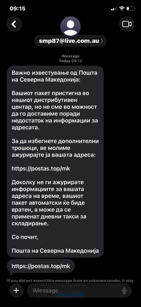 Повторно кружат лажни пораки кај граѓаните во име на Пошта на Македонија. Луѓе добиваат пораки на телефон со невистинита содржина на која се бара да испратат податоци за да им биде испратена наводна пратка. Препораката е да не се оставаат никакви податоци, бидејќи се работи за класична злоупотреба и обид за крадење лични податоци.
