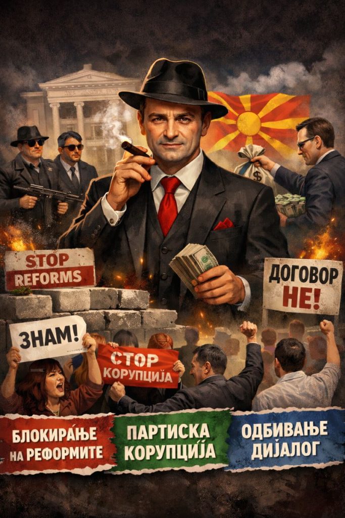 – Филипче мора да излезе од мафијашкиот филм и да престане да ги блокира реформите. Македонија заслужува лидери кои гледаат напред и градат консензус за европската иднина, а не лидери фокусирани на лични и партиски позиции – порачуваат од Движењето ЗНАМ за Наша Македонија.