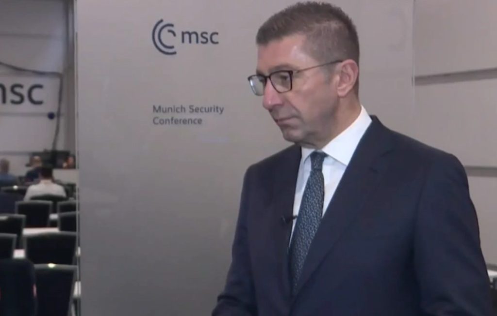 Во интервју за Македонската радио-телевизија (МРТ) на маргините на Минхенската безбедносна конференција  Мицкоски  рече дека македонската Влада се бори да укаже на неправдите низ кои поминала земјата во евроинтегративниот процес и дека членството во Европската Унија не е милост, туку нешто што одамна го заслужила.