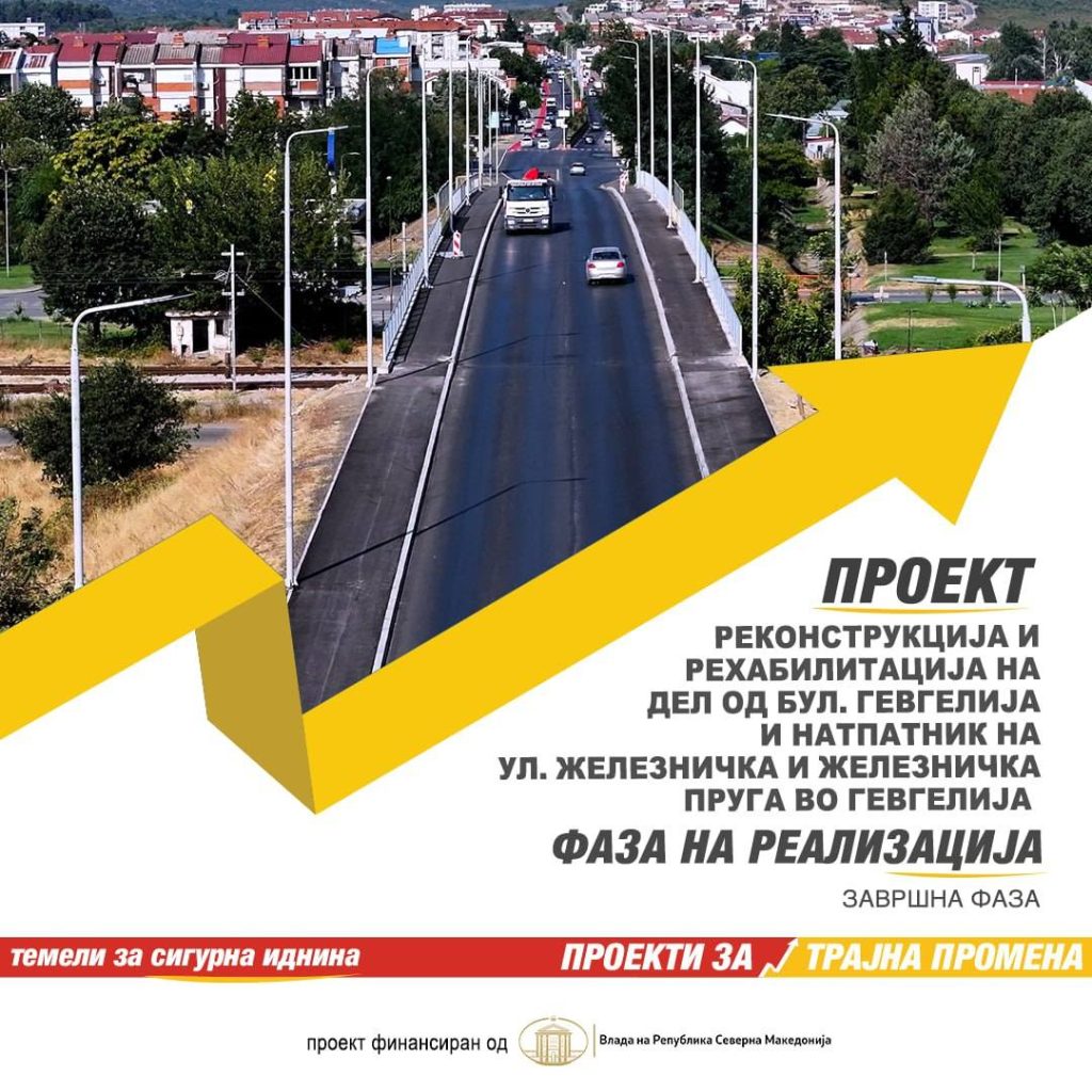 Завршена е реконструкцијата и рехабилитацијата на дел од булевар Гевгелија и натпатникот на улица Железничка, во должина од 550 метри, напиша на својот фејсбук профил премиерот Мицкоски.