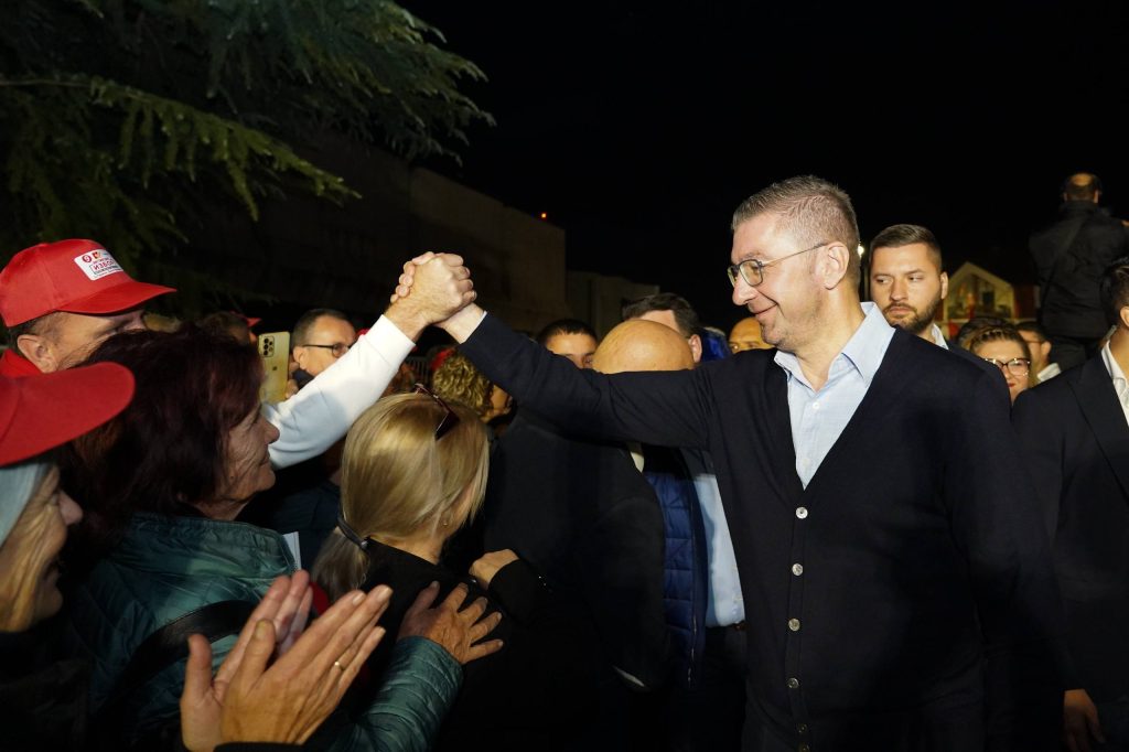 ,, И можам да кажам, човекот навистина вложува многу енергија, се труди од петни жили, го брани неодбранливото, но треба да биде свесен дека секоја негова игра е прозирна и се гледа од месечината, каде јасно се гледа дека ова не е трка и борба за победа на СДСМ, туку трка и борба да си ја спасат сопствената кожа. Зошто? Ако беше поинаку, кога ќе ги видевте осојузени на едно место, на купче Венко, Димче, Али и Стевчо. Ете така, овие неславни ликови народот ќе ги порази исто така на купче на 19 октомври“, истакна Мицкоски.