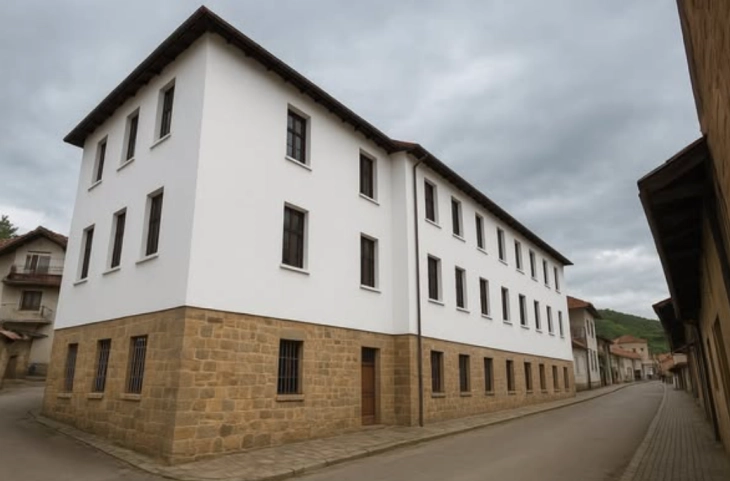 Првиот кат ке биде сала за состаноци, 3 канцеларии, изложбен простор, конференциска сала, етно соба за прием и сл.
