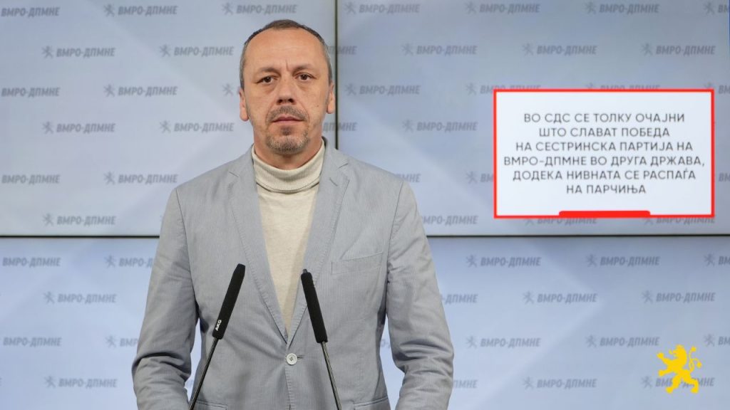 Пратеникот на ВМРО-ДПМНЕ, на прес-конференција истакна дека во СДСМ се толку очајни што слават победа на сестринска партија на ВМРО-ДПМНЕ во друга држава, додека нивната се распаѓа на парчиња.