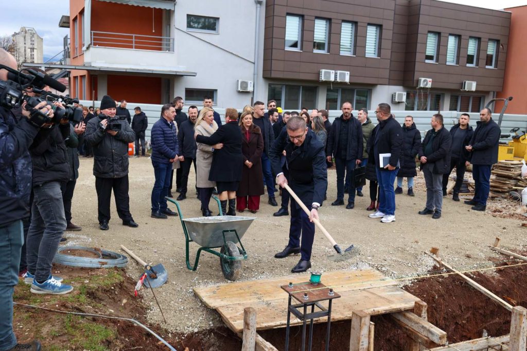 Премиерот Христијан Мицкоски, министерката за образование и наука Весна Јаневска и градоначалник на општина Гази Баба Бобан Стефковски денеска поставија камен-темелник за изградба на нова спортска сала во ООУ „Григор Прличев“ во населеното место Железара.