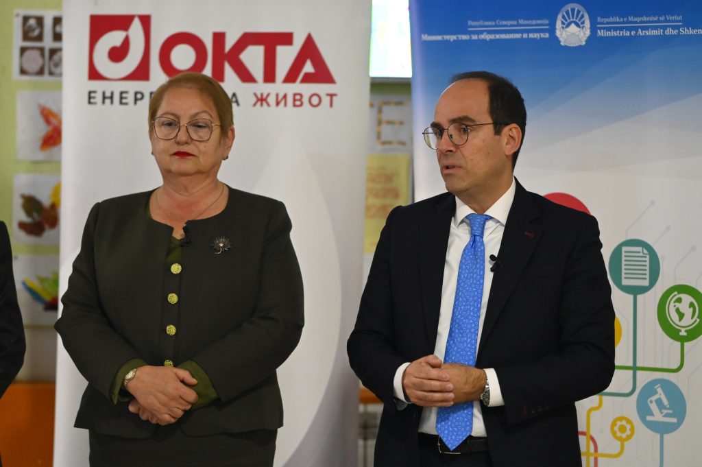 Убедена сум дека така и треба да биде, затоа што образованието е заедничка општествена одговорност, грижата за иднината на нашите деца е наша заедничка мисија. ОКТА е меѓу партнерите на МОН кои помагаат за унапредување на образовниот систем. Во изминатите неколку месеци инвестираше во фотоволтаични системи во неколку образовни установи, меѓу кои и три државни училишта – „Наум Охридски“ во Скопје, „Искра“ во Штип и „Кочо Рацин“ во Битола. Овие системи ќе обезбедат чиста енергија и заштеда на средства, што ќе може да се пренаменуваат за други важни потреби – за подобрување на инфраструктурата, за набавка на нагледни средства и асистивна технологија, истакнала Јаневска.