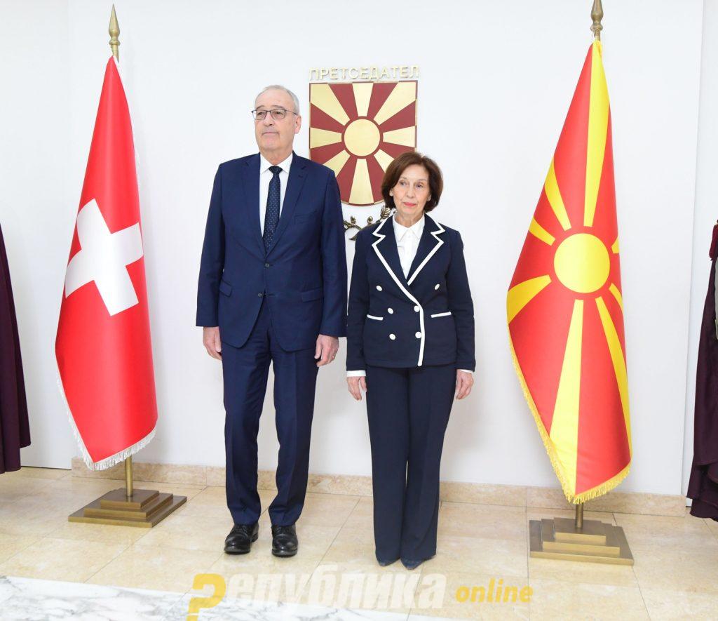 Претседателката Гордана Сиљановска-Давкова денеска го пречека претседателот на Швајцарската Конфедерација, Ги Пармелан, кој престојува во официјална посета на земјава.