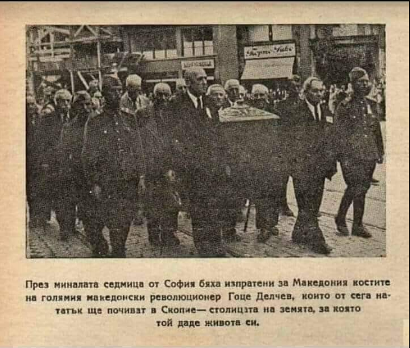 На испраќањето во Софија, Тодор Павлов, член на БАН и регент на Бугарија, во својот говор изјавил: Гоце Делчев можеме слободно да го сметаме за основач на Македонскиот народно-ослободителен фронт… Гоце со целата своја револуционерна активност и мисла, силно придонесе за основањето и развојот на македонската национална свест – македонска, а не бугарска или српска!