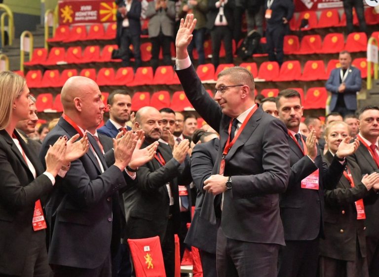 Со 804 гласови од 817 делегати: Мицкоски повторно избран за лидер на ВМРО-ДПМНЕ