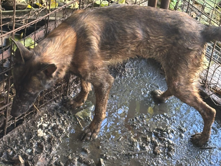 „Поради ваквите услови, животното е најдено во тешка и загрижувачка состојба – екстремно изгладнето, занемарено и деформирано до степен едвај да стои на нозе“, информираа од „Лајка“.