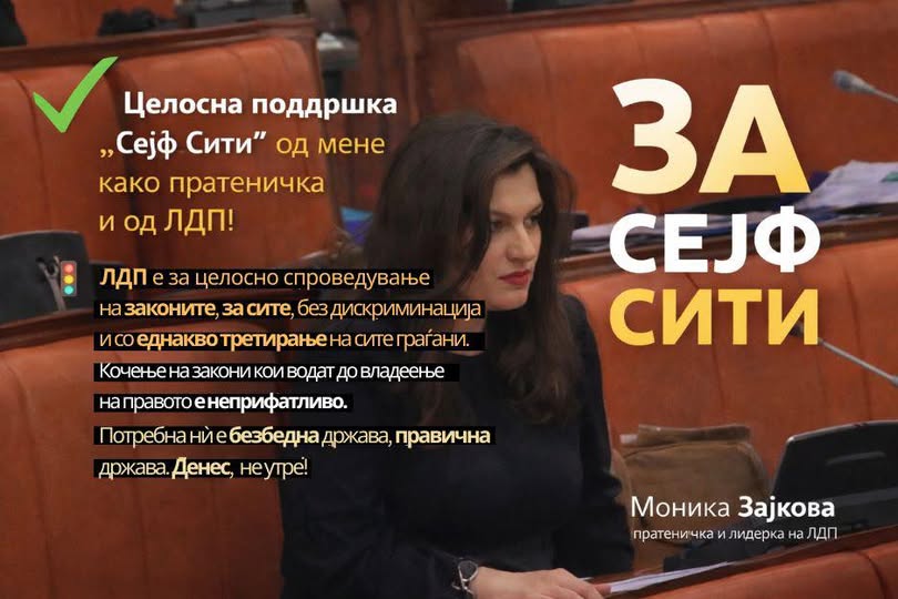 Претседателката на Либерално-демократската партија (ЛДП) и пратеничка во македонското Собрание, Моника Зајкова, во објава на социјалните мрежи изрази целосна поддршка за реализација на проектот „Сејф Сити“.