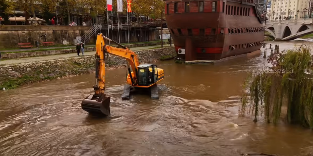 Деновиве со механизација и рачно се чисти коритото и косините на Вардар, се отстранува кабаст отпад и пластични шишиња и се расчистува земјен материјал насобран во централниот дел на кејот, а се празнат и контејнерите од ѓубре.