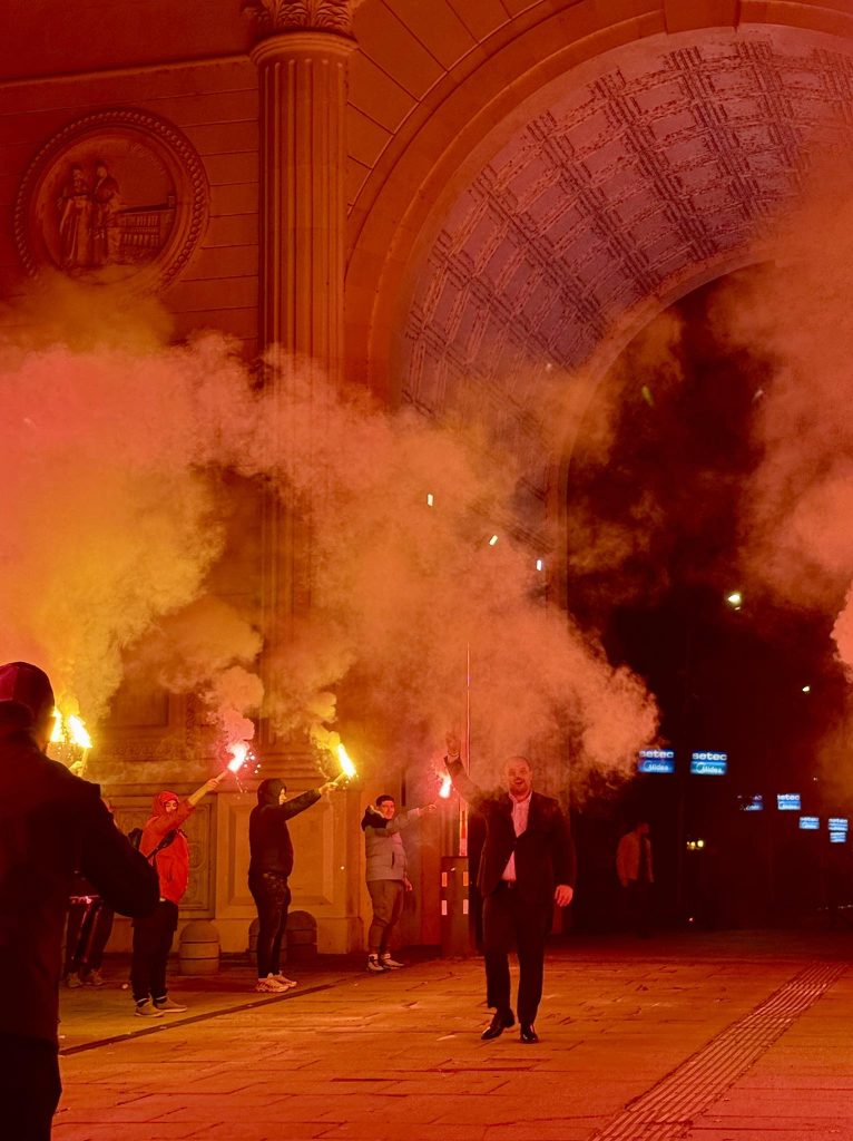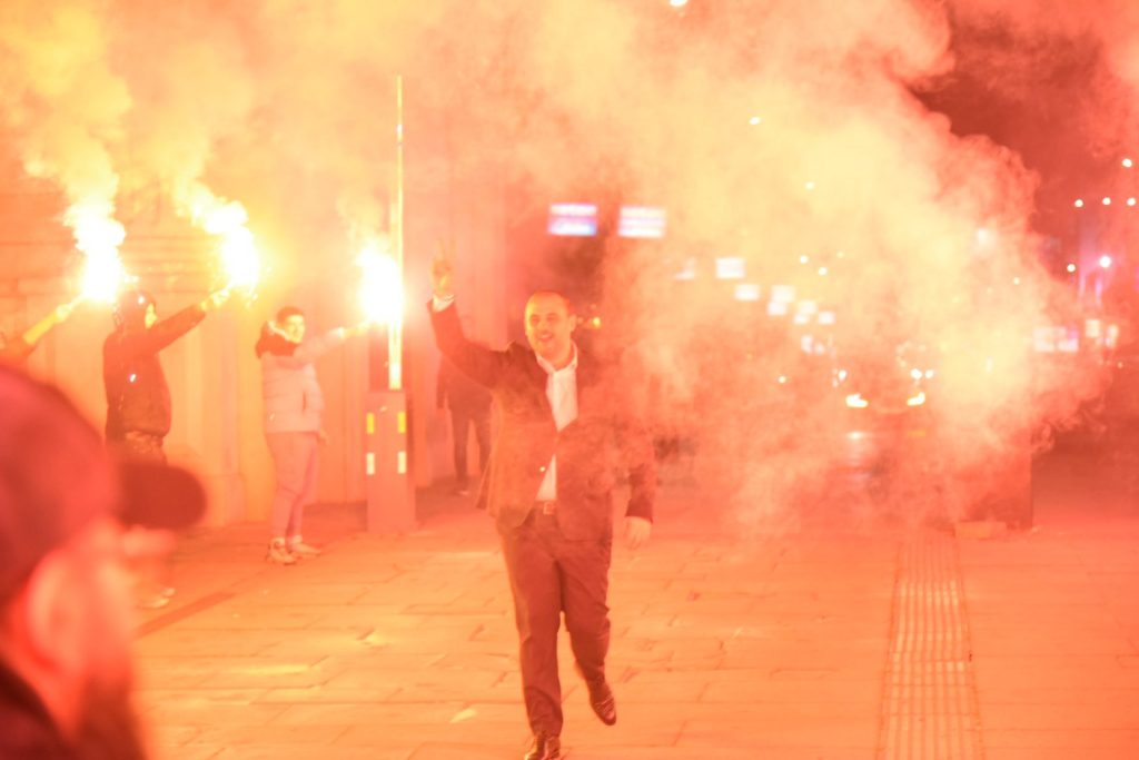 Скопје е ослободено, кажа новиот градоначалник на Скопје, Орце Ѓорѓиевски откако симболично помина под Триумфалната капија, а поддржувачи го пречекаа со факели.