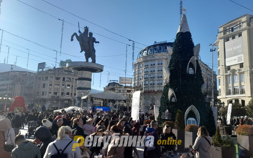 Празничната програма „Новогодишна зимска бајка“ во Скопје, денеска ќе трае цел ден, а ќе кулминира вечер на плоштадот „Македонија“.