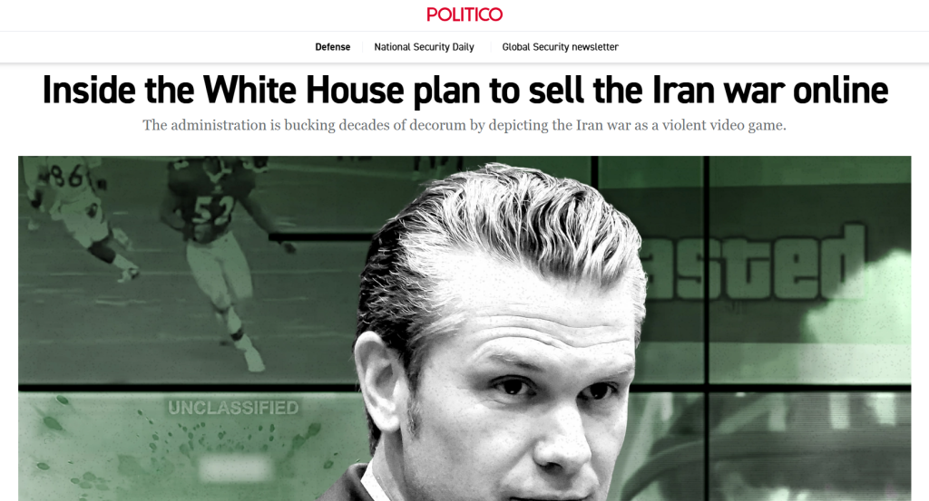 Администрацијата на американскиот претседател Доналд Трамп ја промовира војната против Иран користејќи вирални видеа во стилот на ТикТок, мешајќи снимки од вистински напади со сцени од филмови и видео игри, пишува „Политико“.