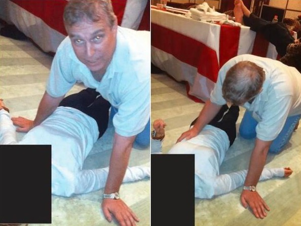 Во најновиот сет документи објавени од американското Министерство за правда се појавуваат фотографии на кои Ендрју клечи на сите четири над неидентификувана жена.