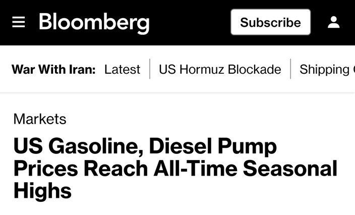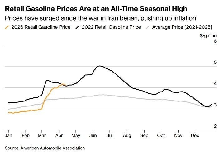 Според изданието, 4,12 долари за галон е највисоката цена на бензинот некогаш забележана во Соединетите Американски Држави за овој период од годината. Во истиот период во 2022 година, цените изнесуваа 4,07 долари за галон, забележува „Блумберг“.