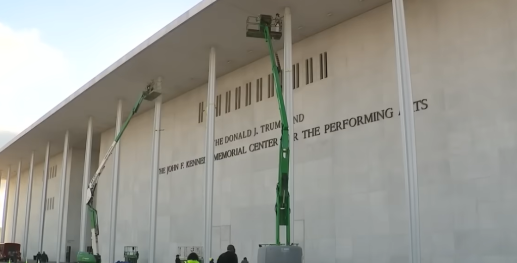 Центарот Кенеди е домаќин на претстави од театарски танц и музика и е именуван по поранешниот претседател Џон Ф. Кенеди (1917-63). Името на Трамп беше официјално додадено во декември, предизвикувајќи протести и откажувања од неколку изведувачи и групи.