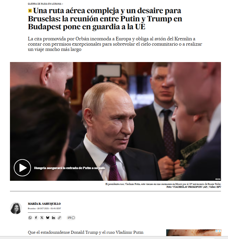„Ел Паис“: Средбата на Путин и Трамп во Будимпешта е свесен чин на понижување за ЕУ и Брисел