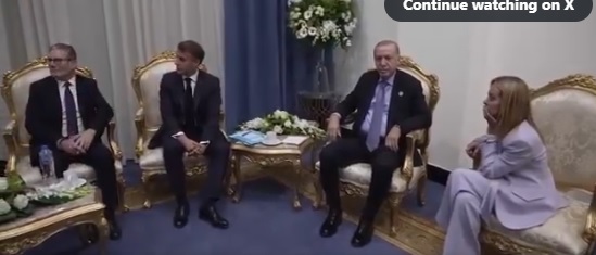 На маргините на мировниот самит за Газа, одржан во Египет, камерите забележаа кратка, но духовита размена меѓу турскиот претседател Реџеп Таип Ердоган, италијанската премиерка Џорџа Мелони и францускиот претседател Емануел Макрон.