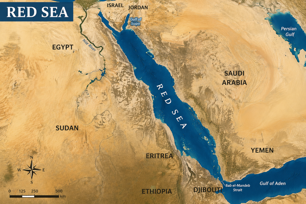 Баб ел-Мандеб го поврзува Црвеното Море со Аденскиот Залив и е клучна пловна рута за трговската флота што плови во насока на Суецкиот канал.