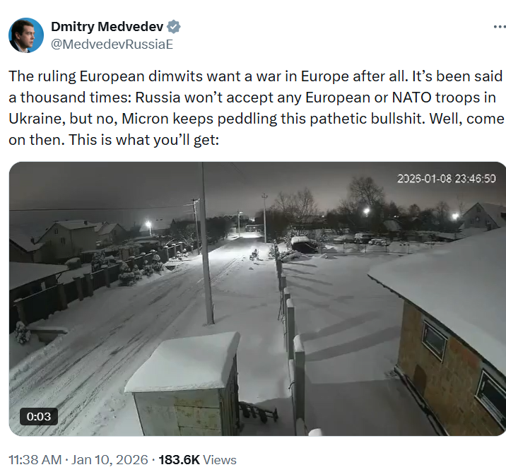 — Dmitry Medvedev (@MedvedevRussiaE) January 10, 2026