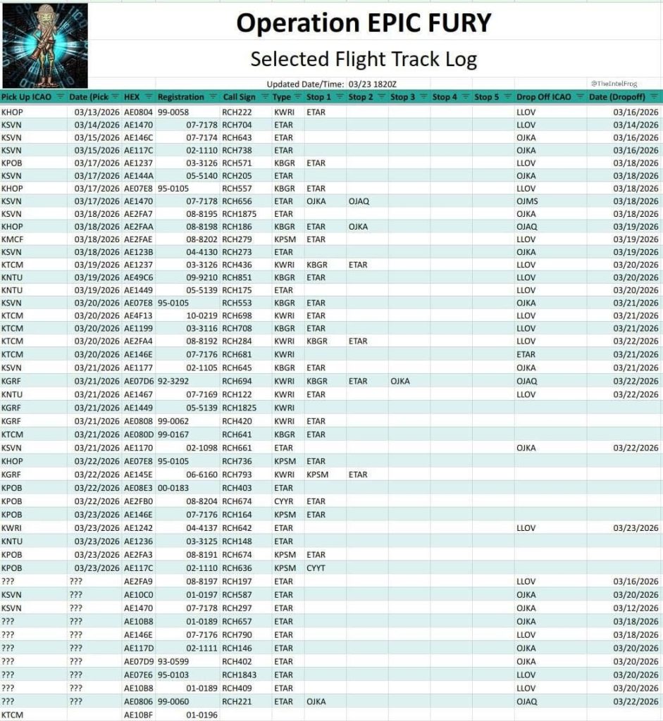 Во таквото масовно распоредување борбени сила уествуваат најмалку 36 летови на транспортни авиони Ц-17 Глубмастер“ од 12 март до сега, со уште 11 летови во режим на подготвеност.