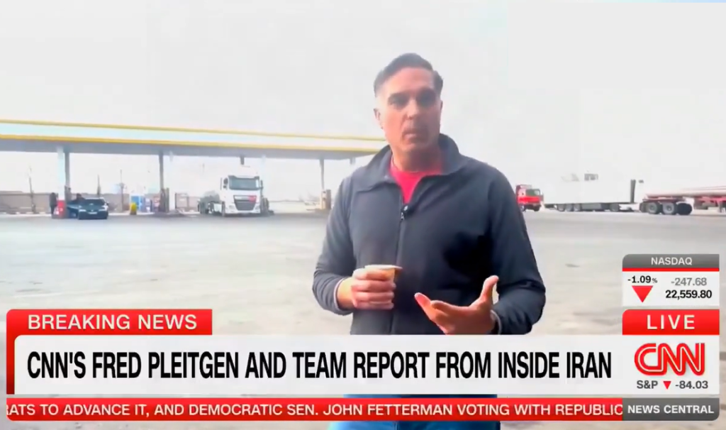 Сè е мирно во Иран, продавниците се полни, нема редици на бензинските пумпи. И нема протести против владата (што значи дека нема илјадници демонстранти наводно убиени од владата)“, констатира новинарот на „Си-Ен-Ен“, Фред Плајтген.