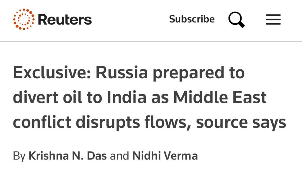 Русија ќе ги компензира загубите во увозот на нафта во Индија поради конфликтот на Блискиот Исток, објавува Ројтерс